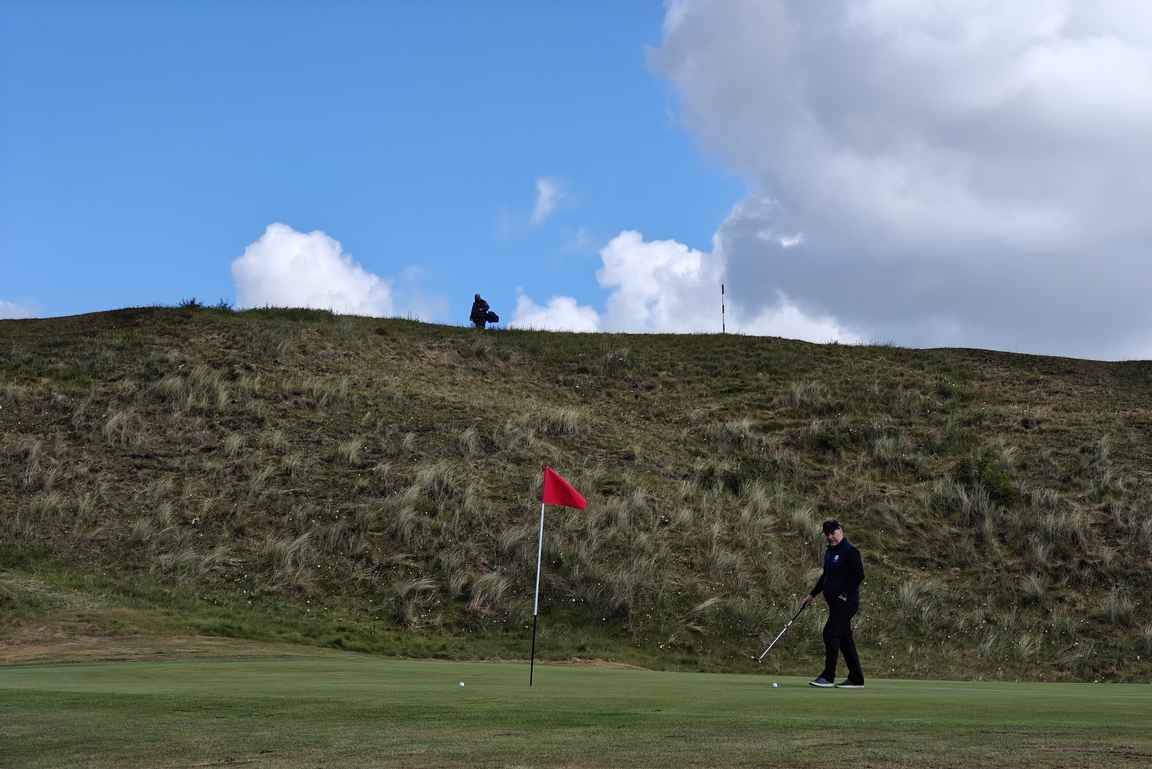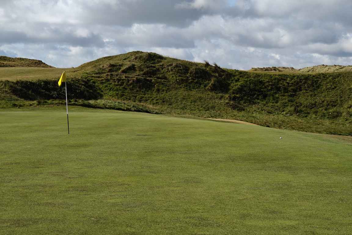 Dyynit ovat Corballiksessa valtavia. Kymppigreenin taustalla näkyy dyyni, jonka yli avataan väylä 11.