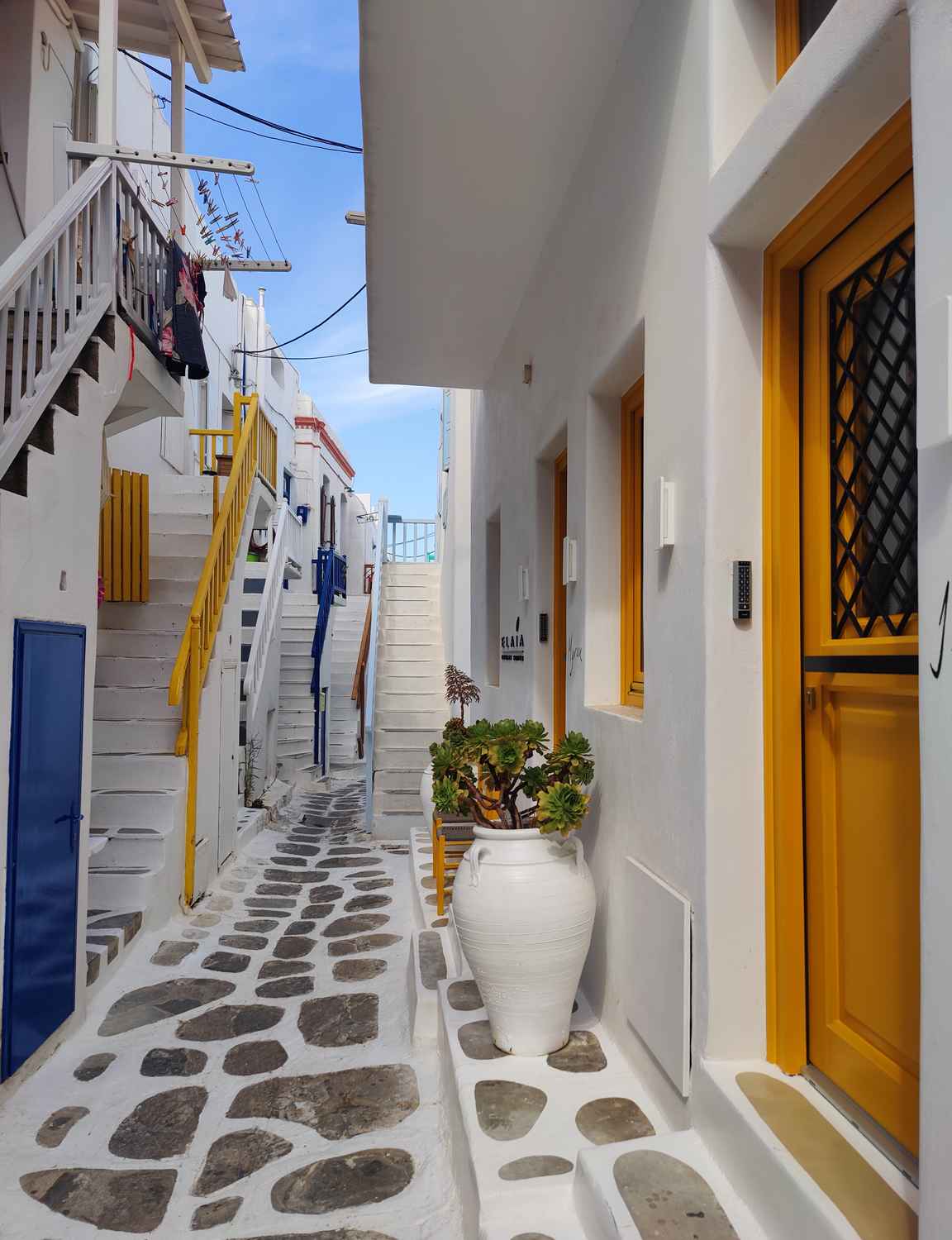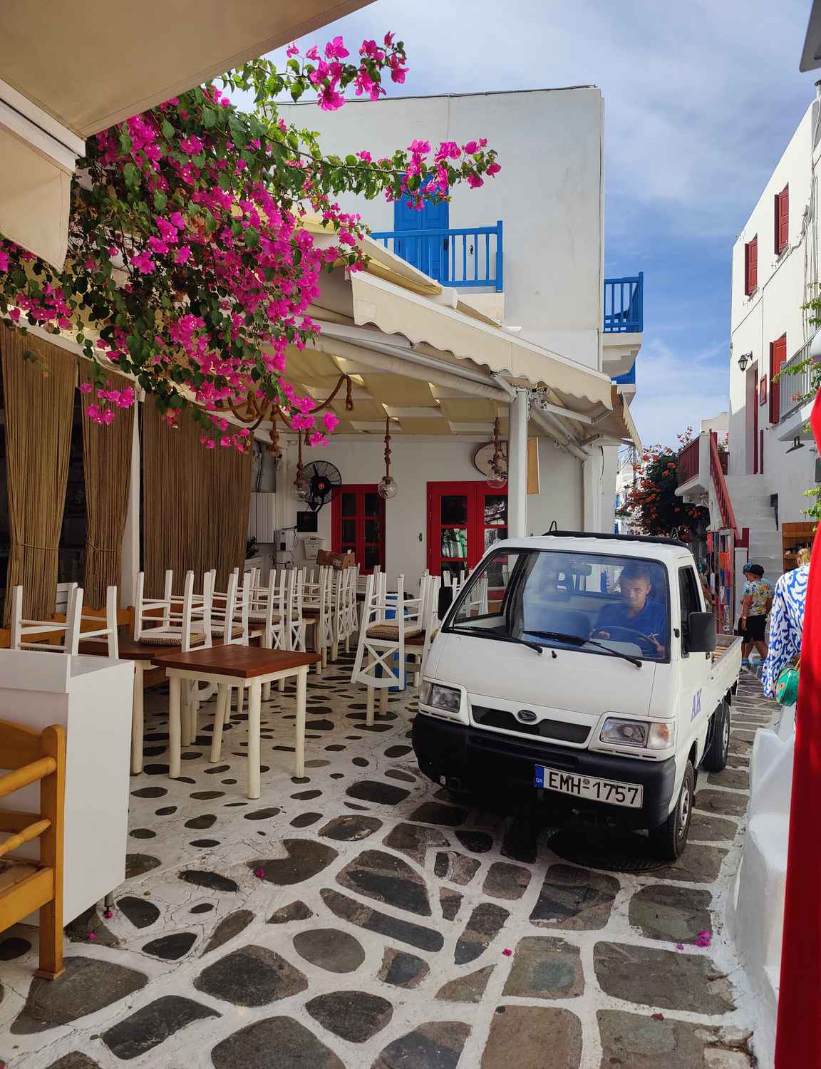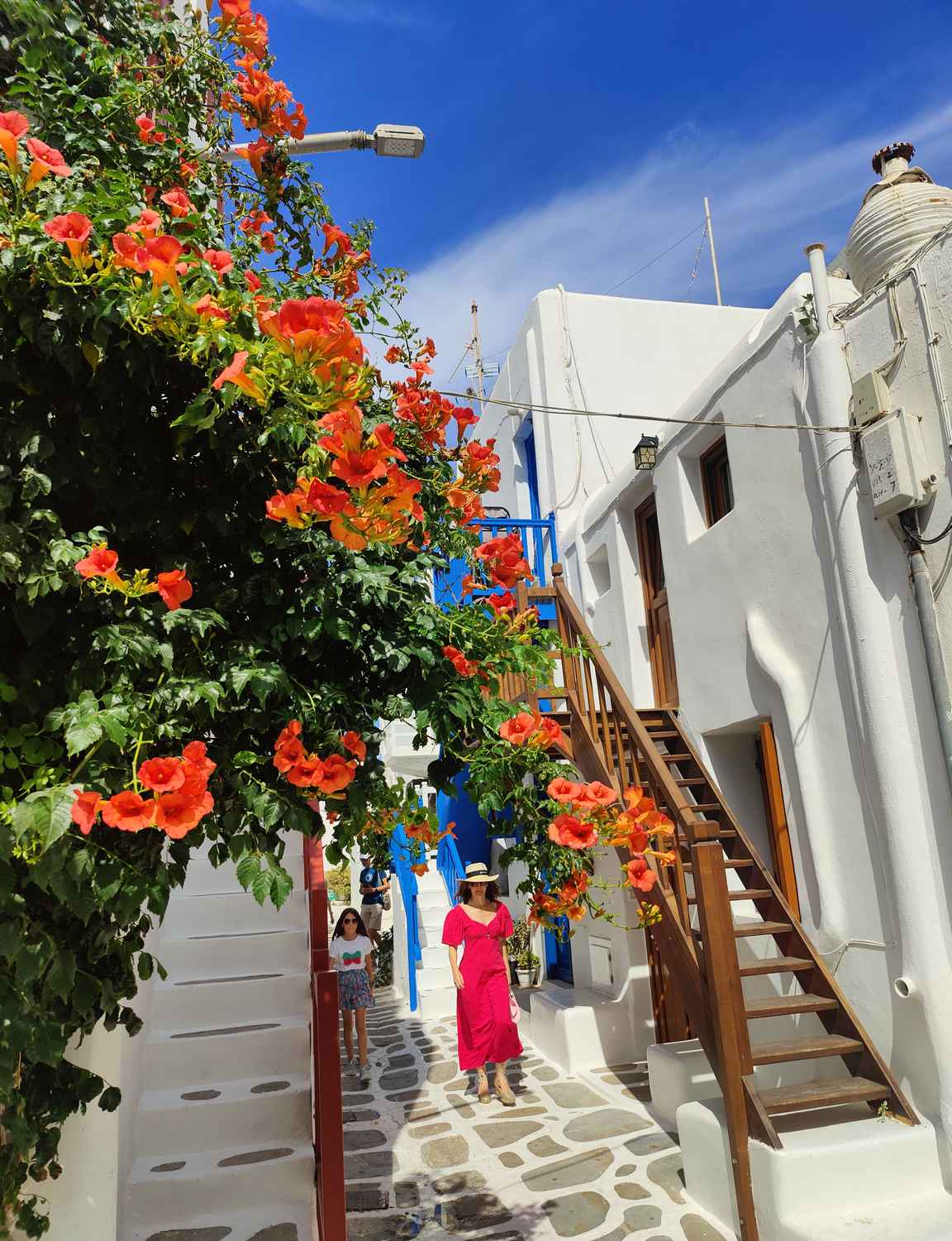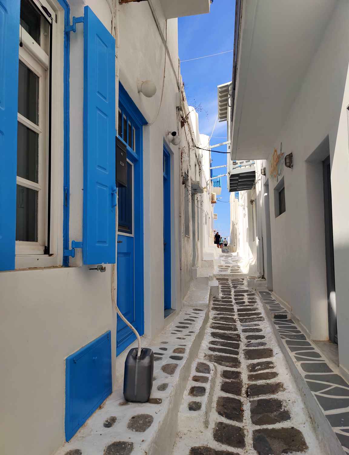 Päiväkävelyllä Mykonoksen kapeilla kujilla