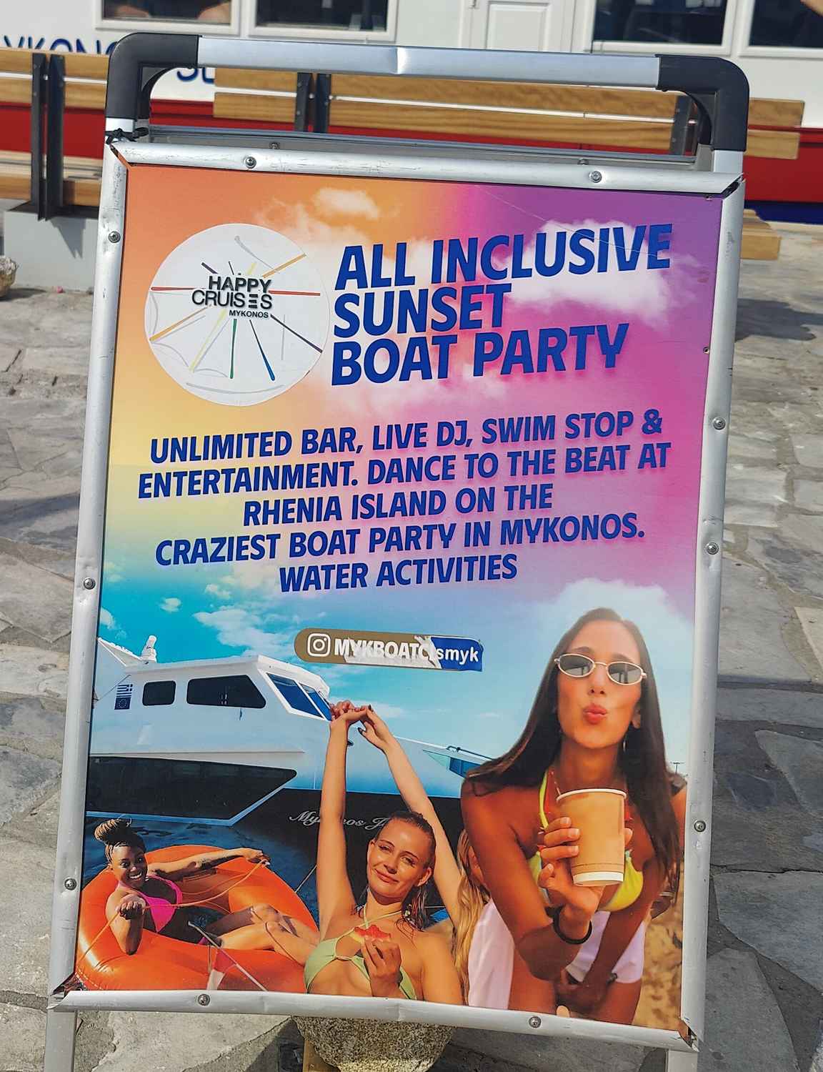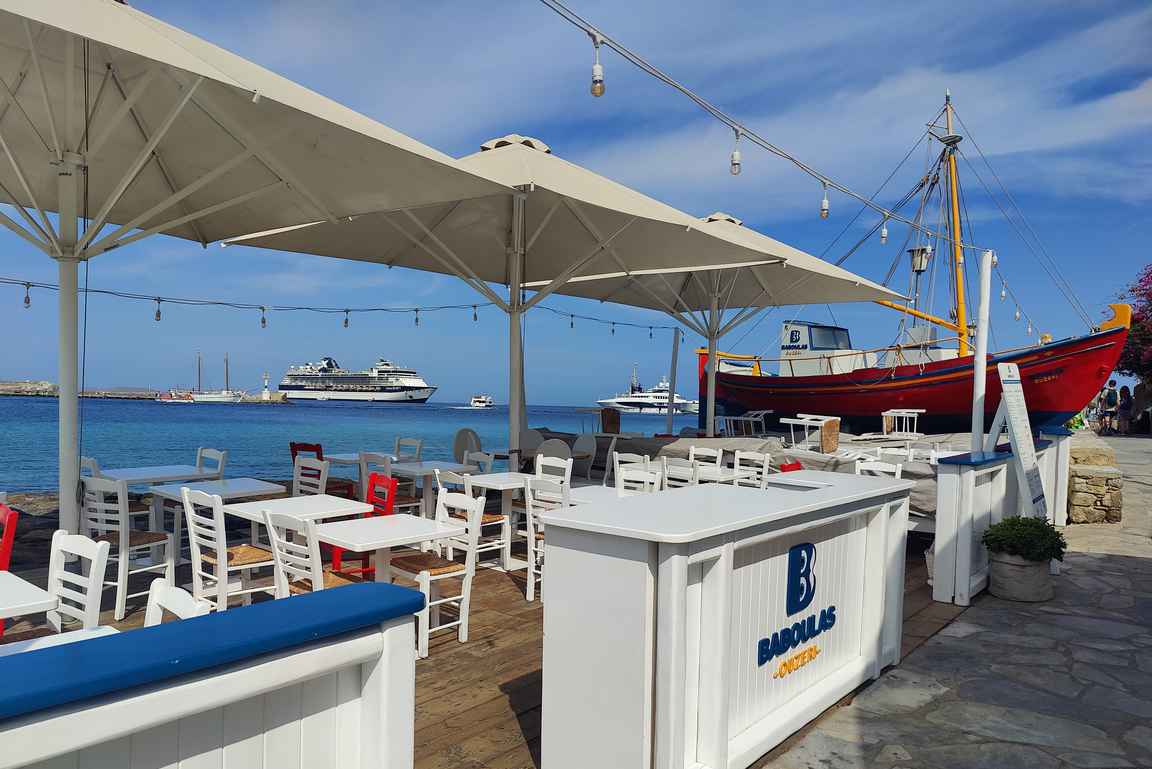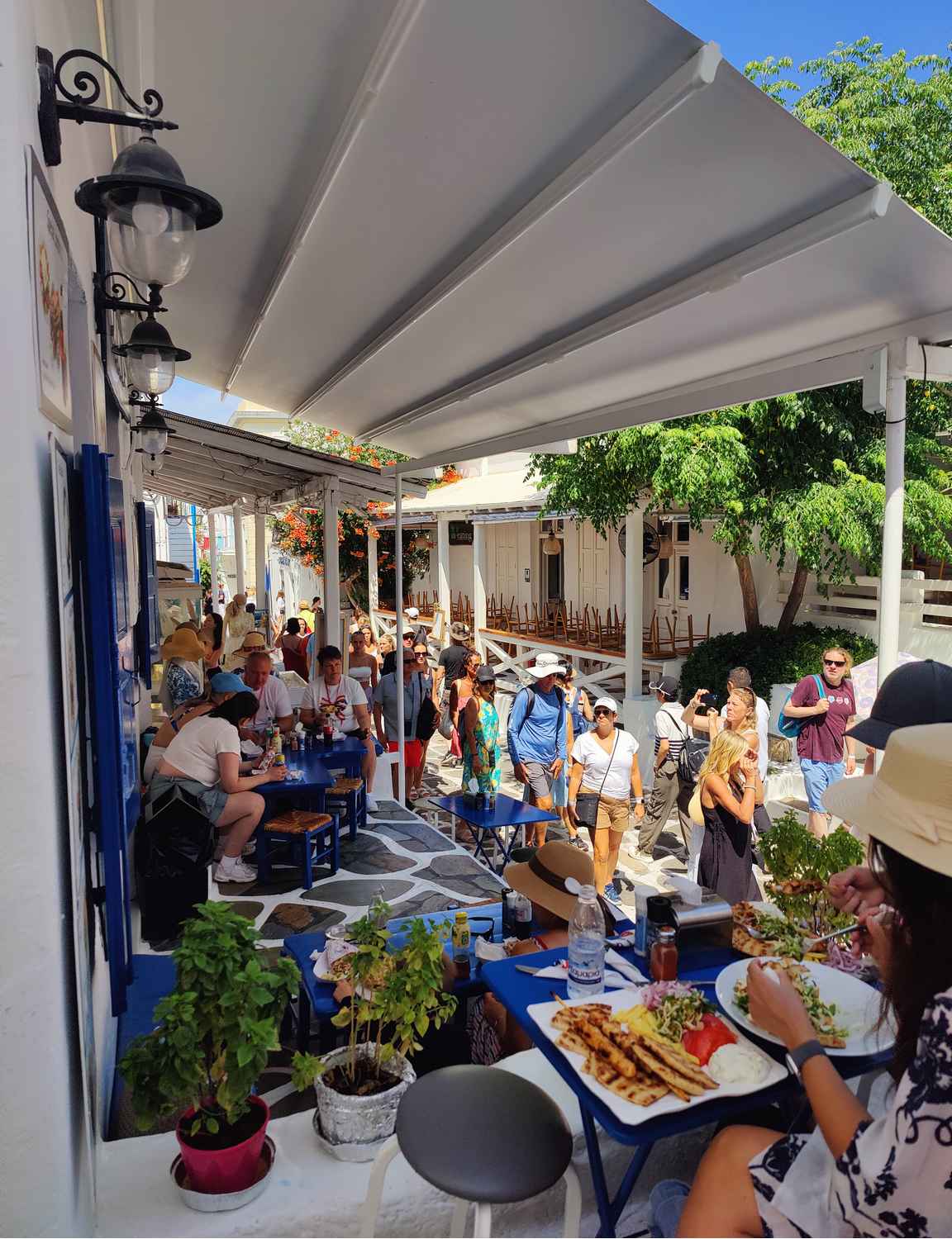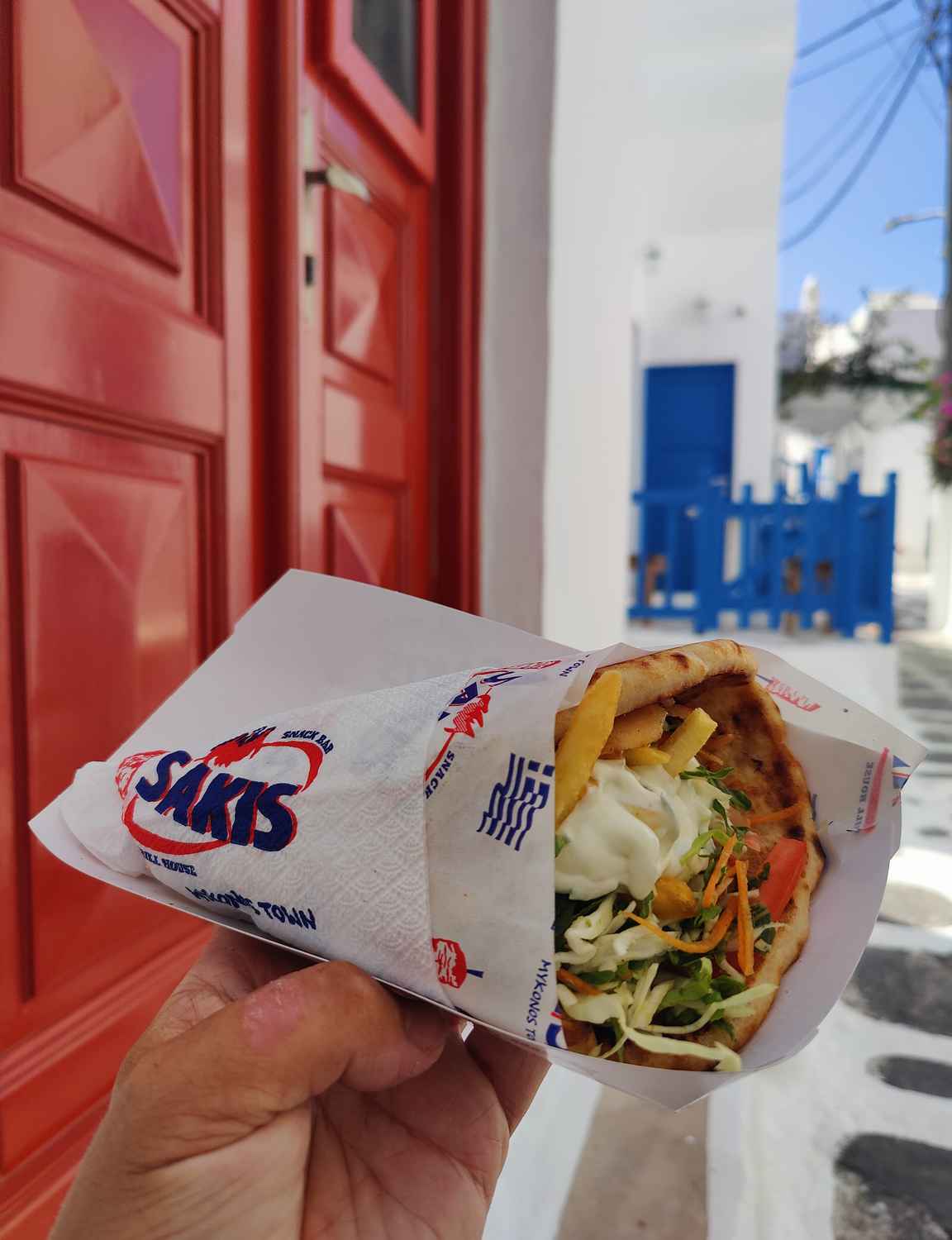 Onneksi sentään Mykonoksen upeiden rantaravintoloiden hintataso on kohtuullista suomalaiselle lompakolle. Upeita paikallisten perheiden pitämiä tavernoita riittää, ja lisäksi tarjolla on suussa sulavaa kanagyrosta “paikallista kebabravintoloista”. Makuelämykset Mykonoksella on taattuja.