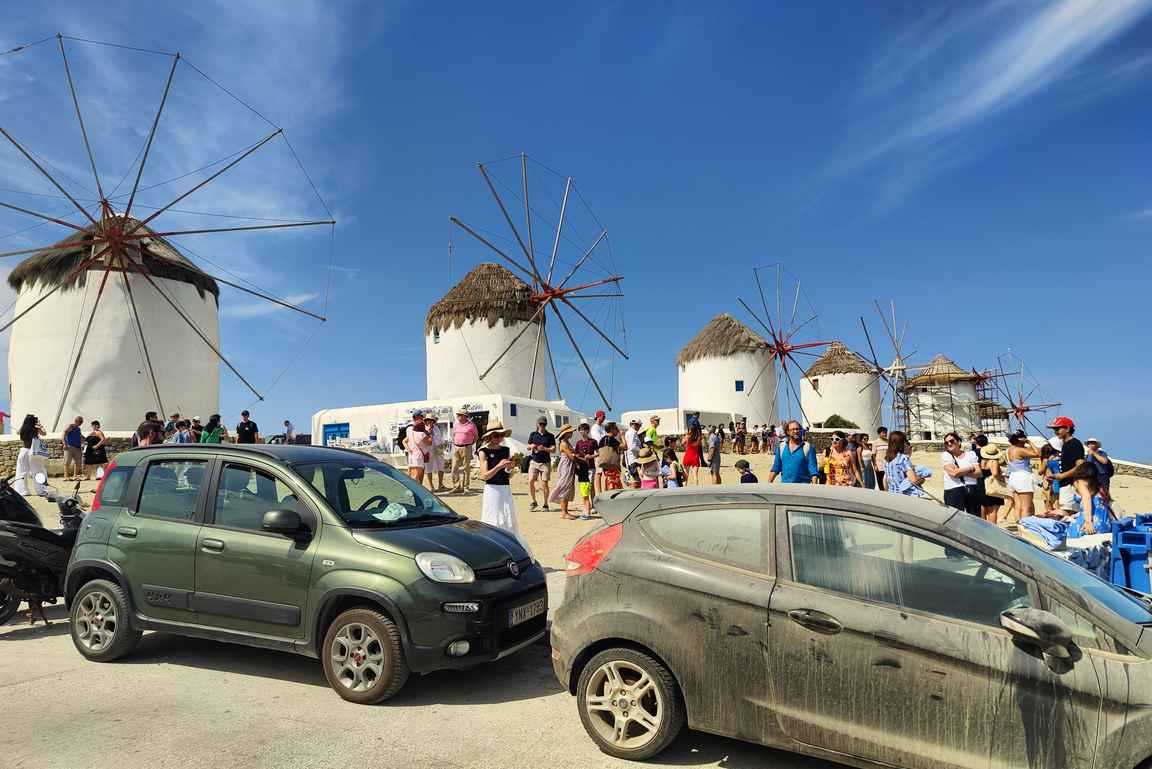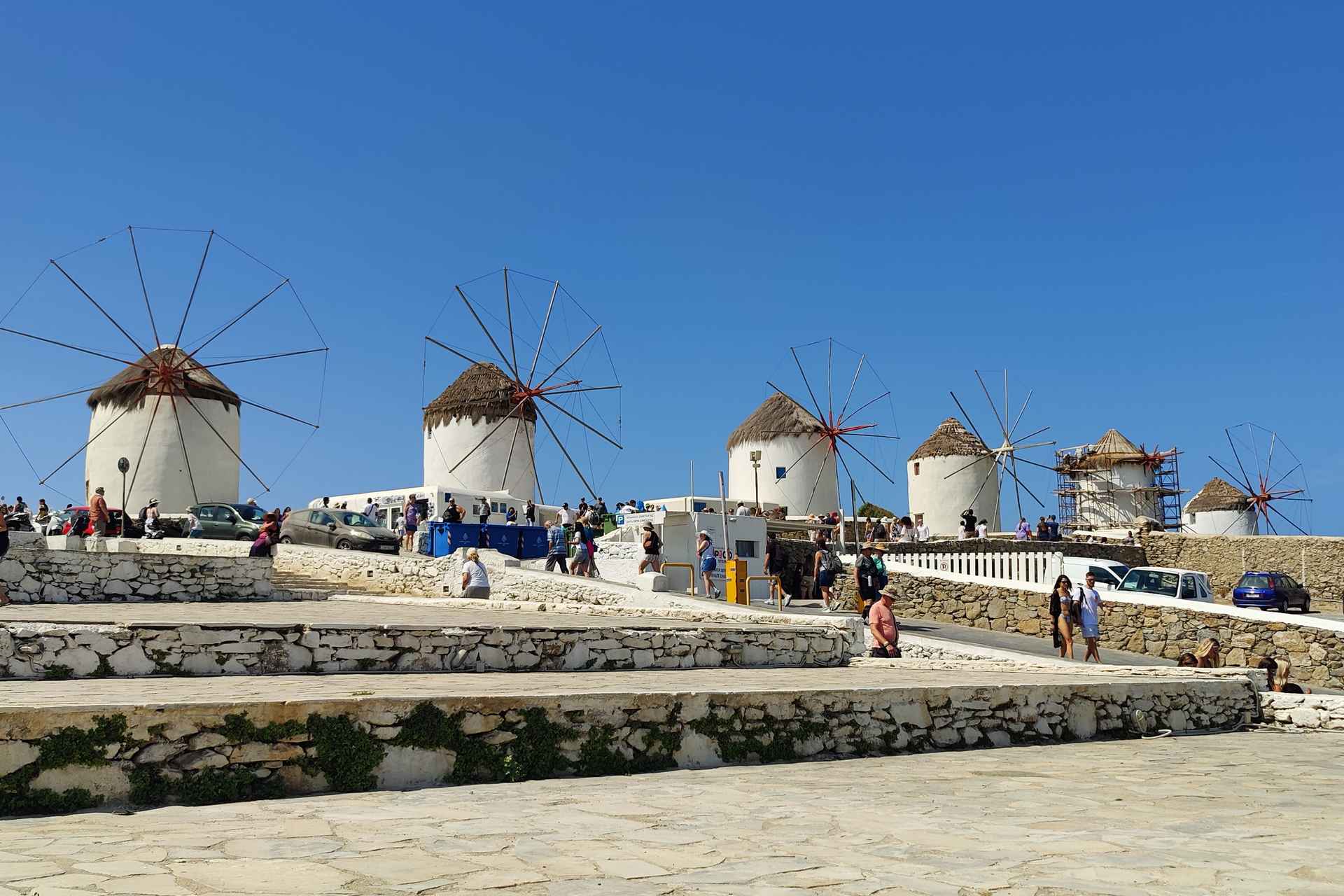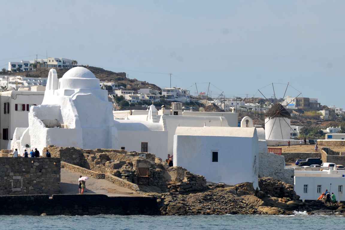 Mykonoksen kaupungin parhaat nähtävyydet ovat kaikki lyhyen kävelyetäisyyden päässä toisistaan. Toki Mykonoksen saarelta löytyy lukuisia upeita rantoja, jolle pääsee paikallisbussilla tai taksilla – tai oikeastaan risteilijöiden ollessa satamassa, kuljetuskapasiteettiä ei yksinkertaisesti ole käytettävissä. Lisäksi “taksimafia” pitää huolen siitä, että yksikään taksi ei polje hintoja, vaan otetaan turisteilta kaikki se irti mitä on saatavissa. Ja miksi ei otettaisi, kolmen vilkkaimman kesäkuukauden aikana tehdään vuoden tili!