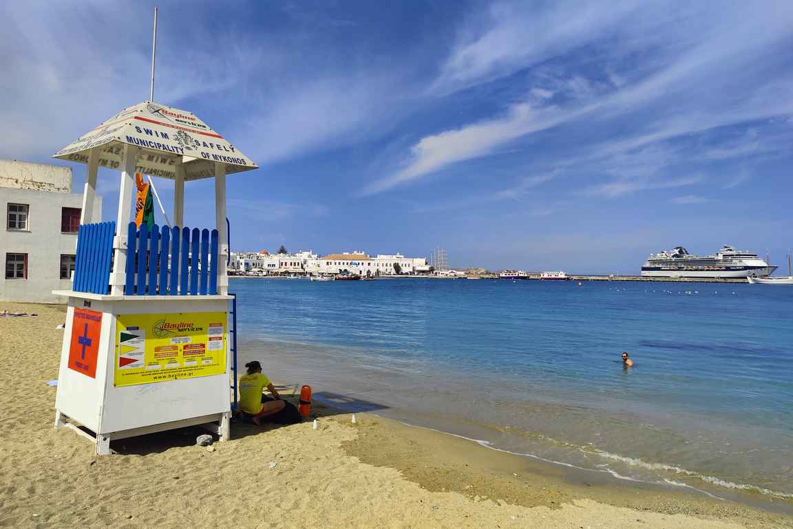 Mykonoksen kaupungin ranta Paralia Choras Mikonou ei kuulu maailman hienompien rantojen joukkoon, mutta se ajaa asiansa niille, jotka ovat bilettäneet yömyöhään Mykonoksen klubeilla. Täällä on hyvä poistaa krapulaansa ja hankkia unelmien rusketusta, kunhan vain muistaa laittaa riittävästi aurinkorasvaa iholleen. Maisemat kyllä poukaman toisella puolella olevalle Mykonoksen rantaraitille on kauniit, siitä ei pääse mihinkään.