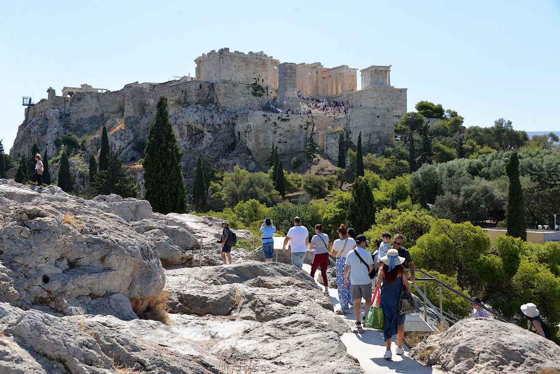 Saavuitpa Ateenan keskustaan mistä suunnasta tahansa, niin Akropolis on aina näkyvissä kaupungin yläpuolella. Kun aloitat vierailun Akropoliksella, alkaa nousu sinne joko portaita pitkin joko Monastirákin tai Plákan kaupunginosasta. Akropolikselle pääsee varmimmin ostamalla hyvissä ajoissa lipun, jossa on merkittynä tunnin aikaväli, jolloin alueelle pääsee sisään. Varsinkin kesäaikaan kannattaa vierailu ajoittaa mahdollisimman aikaisin aamuun, sillä neljänkymmenen asteen helteessä yli 300 rappusen kipuaminen linnavuoren huipulle käy pienestä liikuntasuorituksesta. Kaiken lisäksi kuumimpina kesäpäivinä Akropolis oli suljettuna esimerkiksi tämän vuoden kesäkuussa klo 12 jälkeen kokonaan.