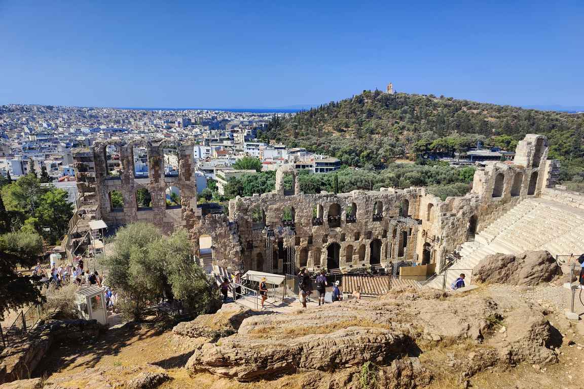 Kohti Akropoliksen kukkulaa ensimmäisenä vastaan tulee Herodes Atticuksen teatteri, jota käytetään nykyäänkin teatteri- ja konserttikäytössä.