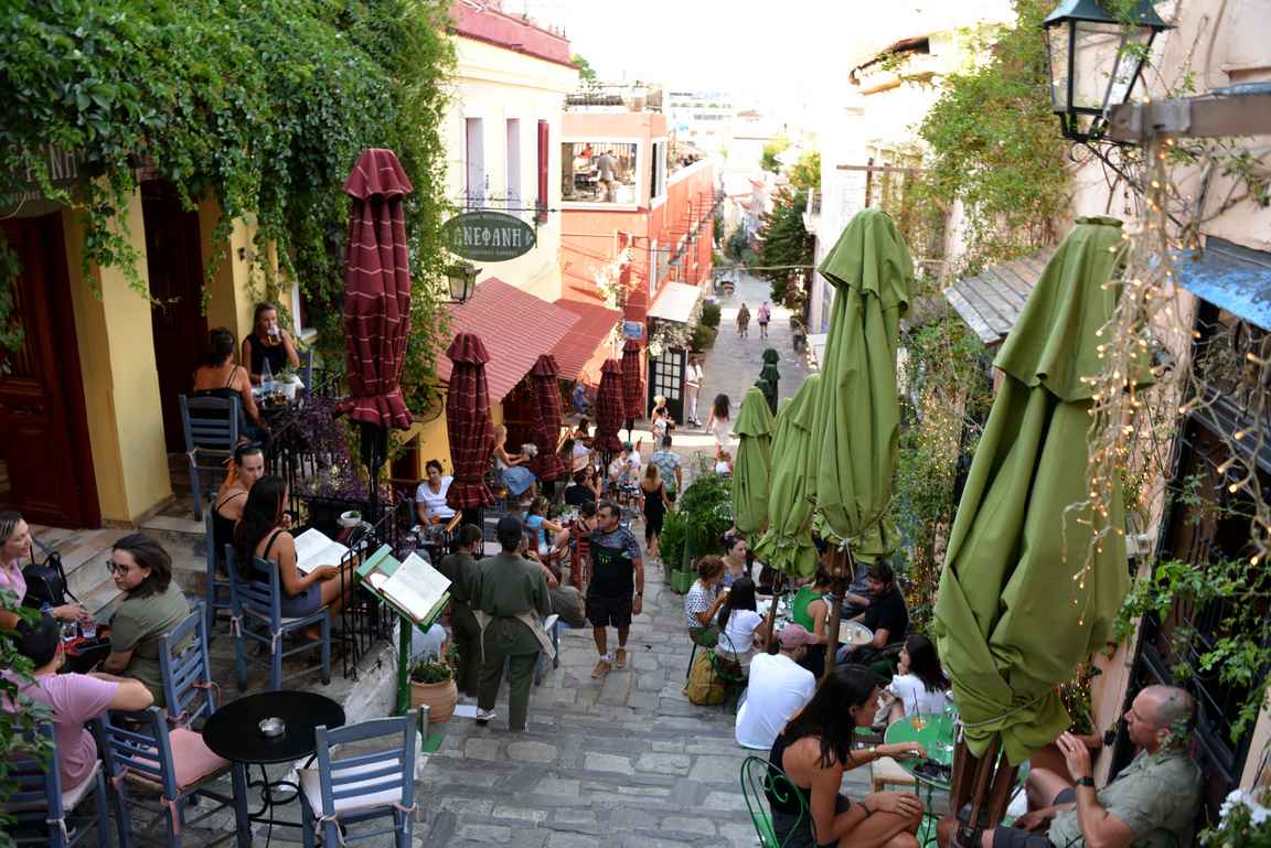 Plákan kaupunginosan kapeat tunnelmalliset kadut ovat parasta Ateenaa. Mukulakivisillä kaduilla on paljon perheiden pitämiä tavernoja ja pieniä baareja tunnelmalliseen illanviettoon. Valokuvauksellisimpia katuja on esimerkiksi kapeiden portaiden Mnisikleous, jonka molemmin puolin on rappusille levittäytynyt kahviloita ja tavernoita. Onkin upea istua niissä päivällä tai illalla ja seurata ohikulkevia kävelijöitä. Ruoka on erinomaista ja kylmä juoma viilentää sopivasti Ateenan ilmaa. Monelle illanvietto Plákassa onkin sitä parasta Ateenaa, varsinkin, jos ei ole vielä enemmän Syntagman kaupunginosan baarikulttuurin ystävä.