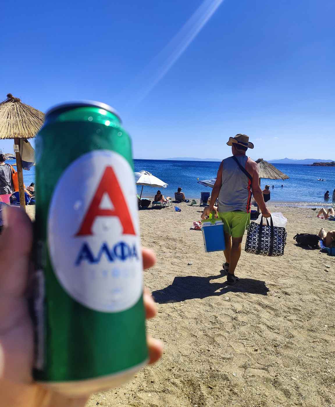 Glyfada Beachilla perinteinen “Parakalo my friend” myyntimies muisti aina mitä tilataan ja puolen litran oluen, Coca-Colan, jääteen ja parin vesipullon hinta oli kahdeksan euroa!
