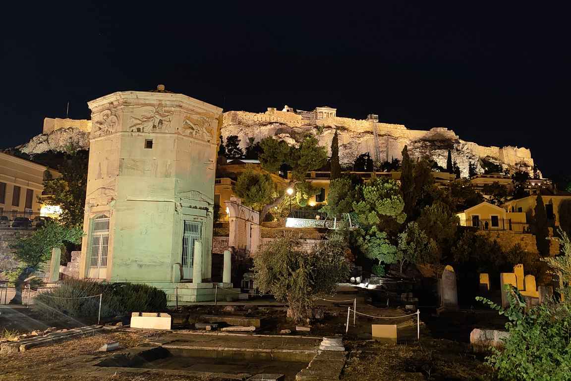 Agoran tunnetuin nähtävyys on kahdeksankulmainen tuulien torni, joka on rakennettu 50 vuotta ennen kristusta. Toinen merkittävä nähtävyys on Athenan portti, jonka Julius Caesar ja keisari Augustus rakensivat 11 vuotta ennen kristuksen syntymää. Kirkkaalla keskipäivän valolla portin yläosassa näkyy kaiverrus, joka kertoo kaksikon vastanneen portin rakentamisesta.