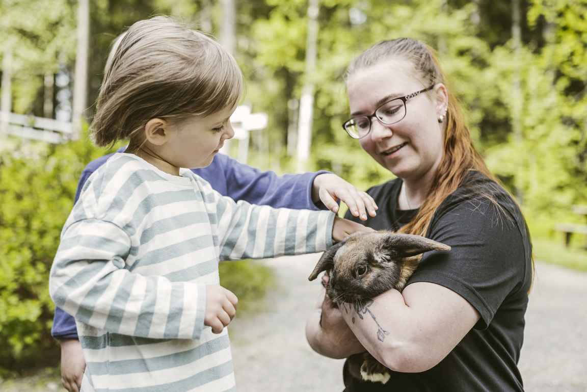 Puuhapuisto Veijarissa perheen pienemmät pääsevät paijaamaan eläimiä copyright Puuhapuisto Veijari, Visual Friday Oy